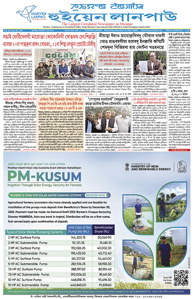 • Q: Pangthokkani thourangliba Manipur Sangai Festivalgi matangda leingakna meeyam amasung Lupsingga yasinnaba purakpana chumloidra? POLL CLOSES AT MIDNIGHT (NGARANG GI RESULT:Yes-100% No-0%)